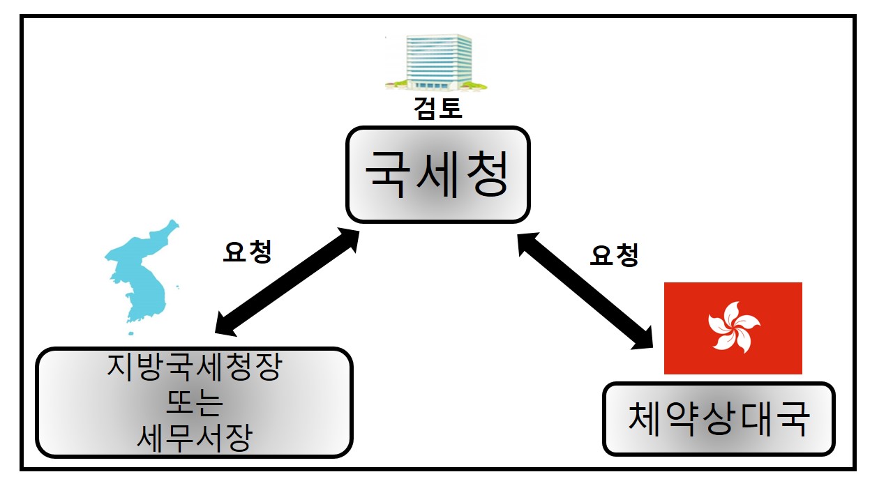 다음의 그림과 같이 한국의 지방국세청장 등은 업무를 처리하는 과정에서 체약상대국의 정보가 필요한 경우 국세청장에게 정보교환을 요청할 수 있고 요건을 검토한 후 체약상대국의 권한있는 당국에 정보를 요청하여 받을 수 있습니다.